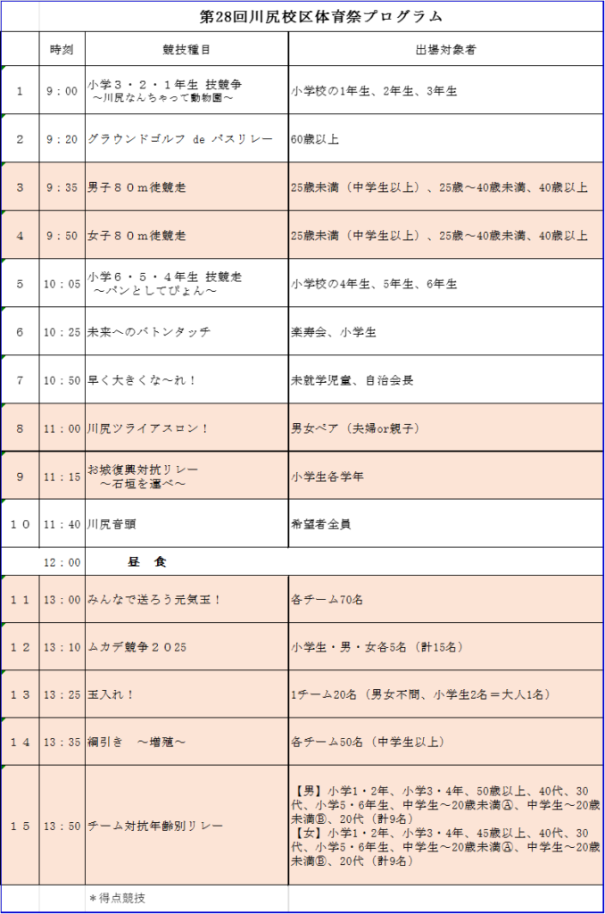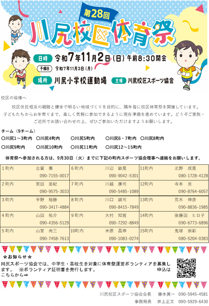 さて、今年は2年に一度のおたのしみ 川尻校区体育祭の開催年です!